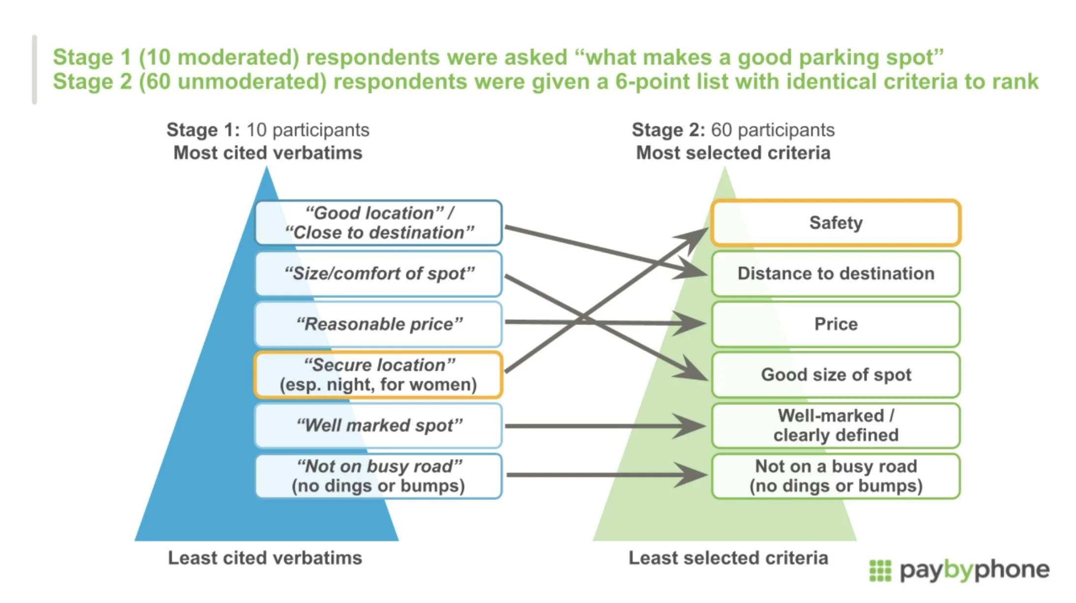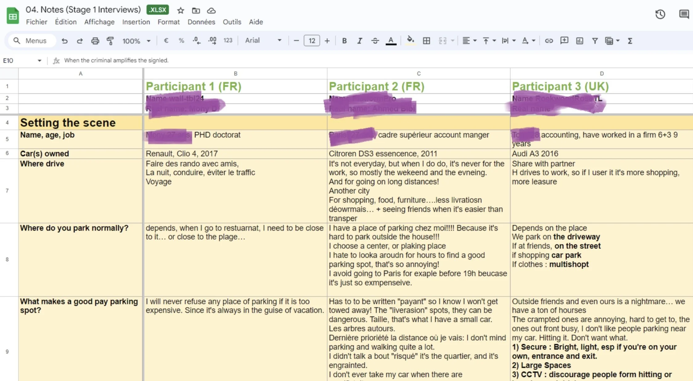 Stage 1 - User Interviews (X=10): I moderated qualitative discoveries with strong focus on users’ POV of safety and security when parking. Car contents were less of a priority at this stage as we first needed to acrrately define “safety” prior to potentially improving it.