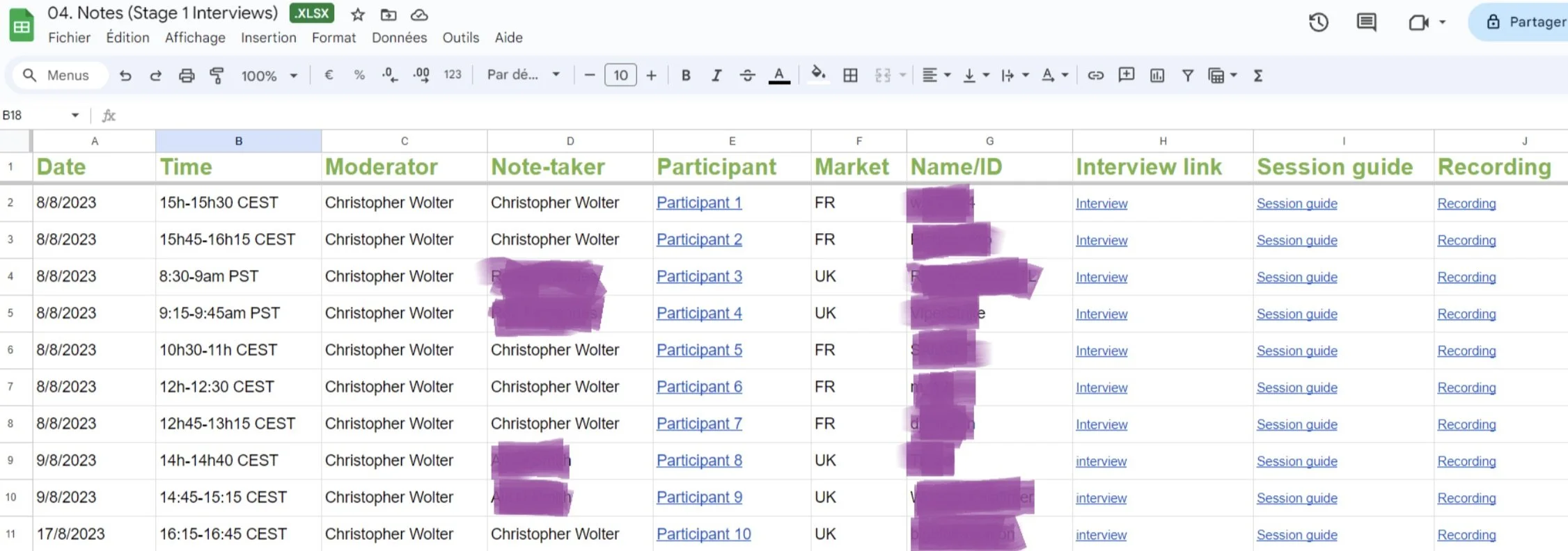 Detailed Recruitment Quotas & Schedule: Crucial in the ever-changing Research landscape; accommodating user dropouts, varying time zones, specific task assignments i.e. note-taking.